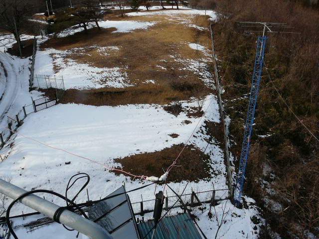 14MHz 1.5λデルタ・ループの実験 de JA1XYB & JK1ECZ アンテナは理論上の自由空間に設置されることはあり得ず地表や周囲の構造物に依存し動作しています。短波・中波・長波帯はその傾向が強くな ります。 ![]() 一辺が10メートル給電点の反対辺の中央で開放(絶縁)です。電流の腹は各交点(角)3か所です。三辺とも地上高15メートル水平設置で す。 ![]() 先端開放なので電気的にはダイポールです。したがって平衡バランを入れないと給電線の影響がもろに出ます。給電インピーダンスは90Ωです が50Ω 用のバランでOKです。 同軸とのマッチングはFT-240 ♯43にテフロン線を巻きつけ広帯域変換トランスを作ります。(下記写真左側参照巻線比は4:5でインピーダンス比は16:25になります。 今回実験したアンテナは広帯域を実感できるループアンテナです。(VSWR特性は下記写真参照) 電離層反射では地表波のようにアンテナ設 置がが水 平か垂直かで偏波が決まるのではありません。このような多面アンテナは電波の到来方向により違った偏波を送受信します。また、雨天の時は地表 が濡れ良好な 反射板となる為格段ゲインが上昇します。 ![]() インピーダンス変換後のVSWRは虚数部零(共振点)で1.02です![]() マッチングトランスの内部。右は7メガで42KΩのコモンチョーク![]() 最強のアナライザー ![]() 調整にはAA-230 アンテナ・アナライザーを使いました。これはJA1SCW 日下OMがウクライナから輸入し販売しているものです。追従する2番3番がない優れものです。小生の使用結果をもって自信を もってお勧め致しま す。これと同等以上のものは存在しません。 洗濯バサミ!![]() 右9クランプテスター(左)コイル測定用結合器、これがあると電波を目で確認できます。コイルのインピーダンスを簡単に測定できます。 給電線のリニア出口のコモンチョーク![]() 左の二つは14MHzで22KΩ右は3.5MHzで35KΩのインピーダンスをもつコモンチョーク、リニアアンプの出力直後に入れていま す。運用周 波数に合わせて高インピーダンスの物を装着します。 アンテナの給電側にもコモンチョークのが入っています。コモンチョークは碍子と同じです。アンテナ給電側にも入れて下さい。同軸のアンテナ エレメン ト(設置も含む)への影響が断ち切れコモン電流による障害は極端に低減します。 コモンチョーク製作の勘どころFT240 43材を使用します。10メガ14メガでは1枚ずつ巻きます。7メガでは2枚重ねます。3.5メガでは他の材の方が良いと思います。 コアは重ねるのと並べるのは意味が違います。並べた場合はインダクタンスは其々の和になります。1枚のコアのインダクタンスは巻き線数の二 乗に比例 します。43材は7メガから18メガくらいまでが高インピーダンスが得られます。勿論他バンドでも効果はありますが性能は落ちます。 リニアアンプの電源に入れたコモンチョーク![]() 三相のRS及びST相に入れたリニアは一応Δ結線?で使用している「大進無線のキット」 14メガのHB9CV![]() 番外ですが14MHz用広帯域HB9CVのVSWR特性です。これも広帯域です!放射器が二つあるので設計によってはもっと帯域を広げられ るかも? 50Ωのインピーダンスに対して中心周波数でリアクタンスは1Ω以下ですから、ま!いっか。 |